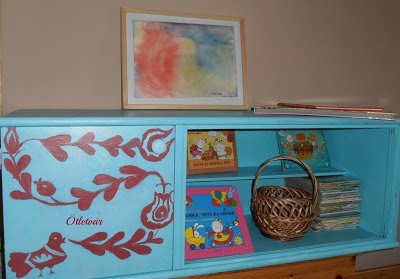 A testvérei, akikkel együtt jött, mind kaptak már valami új ruhát, az egyik babakonyha lett (ja, hogy ezt még nem mutattam, na majd karácsony előtt :-)) A másik névnapi ajándék lett Csíkos éjjeli szekrény, a vízlóca pedig cipős szekrény. Már csak ő árválkodott lent egyre magányosabban.